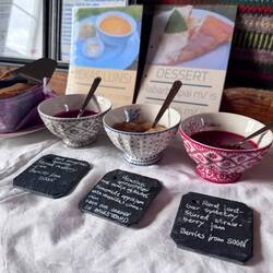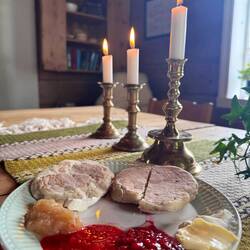 Zum Abschluss gönnten wir uns noch Apfel- und Erdbeerkäsekuchen, Fischsuppe und Hirschgulasch. Schmacko!