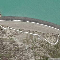 Die Klamotten halten zum Glück schön warm und so laufen wir zum Staudamm hoch und dann auf diesem entlang.