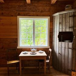 Die Hütte ist rekonstruiert, aber super authentisch. Der Ausblick vom Schreibtisch und Balkon fantastisch.