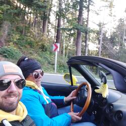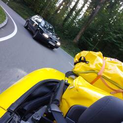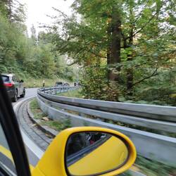 Da heute fast alle Teams von derselben Location gestartet sind, reicht sich auf dem Weg zum Bodensee ein Rallyeauto ans andere. Sehr geil!