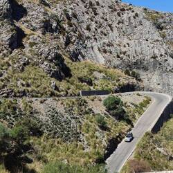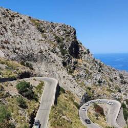 Wir fahren unser nächstes Zwischenziel über diesen wunderschönen Pass an. Dabei laufen wir langsam auf die beiden Teams auf, die wir schon in Port de Sóller getroffen haben: TT Currywurst im MLBaca lagi
