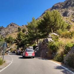 Die Karawane zieht weiter zum Parkplatz an der vor uns liegenden Bucht von Sa Calobra.