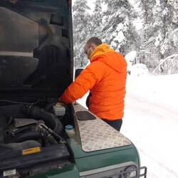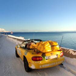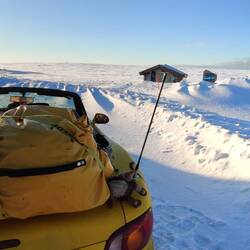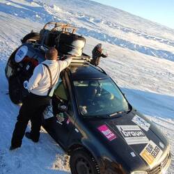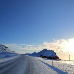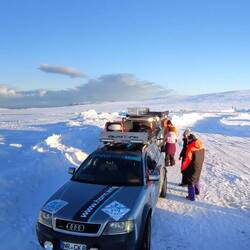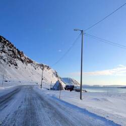 Nach einer eisigen Nacht etwa 120 km unter den Nordkap geht es nun los