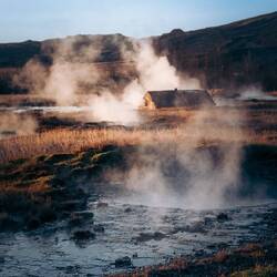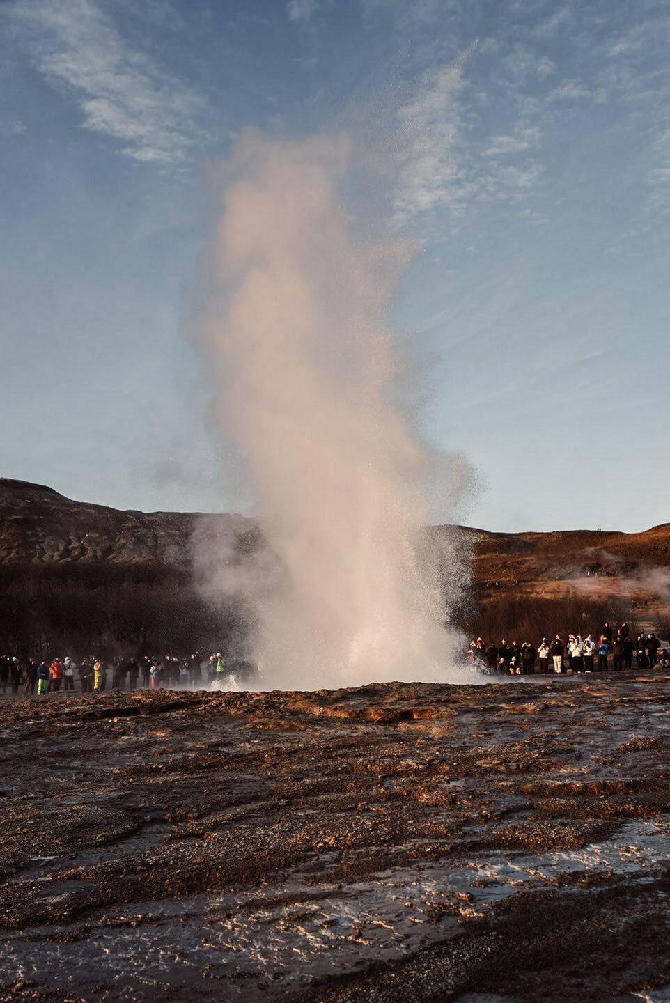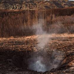 Alle 8-10 Minuten pustet der Geysir Stokkur seine Fontäne in die Luft. Nicht nur das ist spektakulär, sondern auch, dass der Boden dort im Umkreis kräftig brodelt und dampft.