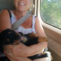 Josef hat eine richtig hübsche und liebe Rottweiler-Hündin.ππΆπ Von den drei noch verbliebenen Welpen suchte Micha sich den dicksten ππ und ruhigsten aus. Solch ein Hundewelpe ist aber auch einfach nur zum Knuddeln. Auf dem Rückweg kuschelte sich der Kleine ganz schläfrig in meine Arme...ππΆ Am liebsten hätte ich ihn gar nicht mehr hergegeben.
