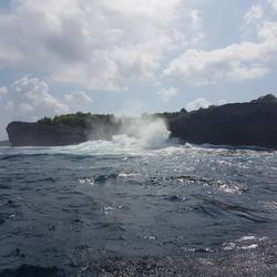 Morgens um 08.00 Uhr ging es los zu unserem Trip mit einem brandneuen Boot. Wie man uns erzählte soll es auf der Insel wohl mittlerweile neun Tauchshops geben... Unser erster Stopp sollte der Mantapoint sein und das hieß einmal vom Norden der Insel Richtung Süden...immer an der schönen und zum Teil schroffen Küste entlang, an der sich der morgendliche Nebel langsam lichtete und die Sonne mehr und mehr zum Vorschein kam, vorbei an verschiedenen Stränden...am legendären Broken Beach, am beeindruckenden Karang Dawa View Point, vielen interessanten Felsformationen, an denen sich die Wellen brachen mit hochspritzender Gischt, an großen Felsen im Wasser vor der Küste...und dann war da noch mitten im Meer ein wie ein Torbogen geformter Felsen...🏞🌅🚤🌞🌊alles soooo schön....Morgen schauen wir uns das alles auch noch einmal von der Landseite an....😊😍