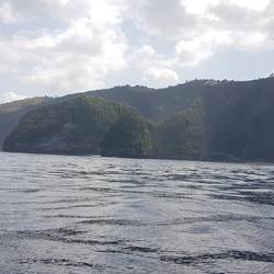 Bei all dieser Schönheit störte uns die doch turbulente Fahrt durch die hohen Wellen, hoch und runter, vom Wellenberg ins Wellental mit ordentlichen Schlägen der Wellen ans Boot sehr wenig...mein einziges kleines Problem war, dass mein Magen etwas rebellierte, da er die zum Frühstück gegessenen Frenchtoast einfach nicht akzeptieren wollte....😬😳🤨🙄...das konnte ja im Wasser nur noch besser werden. Mittlerweile sind wir mit Wassertemperaturen von 28 bis 30 grad so verwöhnt, dass Marc gar nicht auf die Idee kam einen Wetsuit anzuziehen...gut, dass er noch vom Tauchshop eine Empfehlung bekam und sich auf den letzten Peng noch einen Anzug ausleihen konnte...die Wassertemperatur hier lag bei für uns schon kalten 23 Grad....grrrr.....und ich war froh, dass ich Marc's Tauchshirt bekam.