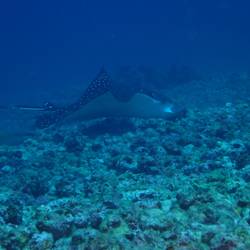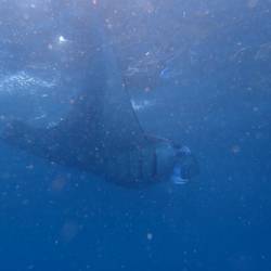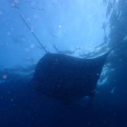 Mantapoint..... machte seinem Namen alle Ehre...😊😀😊 Ich schnorchelte mit recht vielen anderen Schnorchlern so vor mich hin und beobachtete einen recht großen Koran-Kaiserfisch, verschiedene Doktor-und Lippfische, sah verschiedenste Quallen um mich rum, ein paar Blau leuchtende Einzeller....und dann kam er....auf meiner Höhe, direkt auf mich zu...schwebte er majestätisch durch das Wasser mit einem Minimum an Bewegungen....ein ca. vier Meter großer Mantarochen....und zeigte sich in voller Schönheit....ich sah ihn von vorne, von der Seite und von oben als er hinab schwamm....ein Traum von mir ging in Erfüllung....😍😍😍😊 Und wie ich noch ganz ehrfurchtsvoll und aufgeregt dem Manta hinterher starrte, fing ich an, mich etwas über mich selbst zu ärgern...Wieso hatte ich nicht Marc's alte Unterwasserkamera die TG1 📷mitgenommen...Das wären bestimmt coole Fotos geworden. Nun hoffte ich inständig, dass Marc beim Tauchen auch einen Manta sah. Kaum gedacht, kam da schon der nächste große Manta und ich sah Marc unter mir, wie er anfing zu fotografieren....so cool.😘...und immer wieder kamen Mantas zwischen zwei und vier Meter Größe daher geschwebt...teilweise so dicht an mir vorbei, dass ich meine Arme ganz dicht an den Körper zog, um sie nicht zu berühren....insgesamt waren es vier Mantas, die mindestens acht Mal um mich herum gleiteten. Was für ein unglaubliches und unvergeßliches Erlebnis. Zurück auf dem Boot bekamen Marc und ich ein breites Grinsen nicht mehr aus unserem Gesicht.😊😊😊😍😍😍