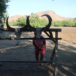 Auf dem Weg dahin ging es 30 km über rote Sandpiste, an Mangofarmen vorbei und wir sahen auch mehrere Buschbrände. Erstaunlich ist nur, wie sich die Natur davon immer wieder erholt.