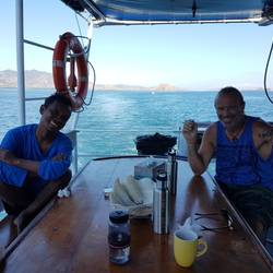 Um 10.00 Uhr wurden wir heute zu unserer Abenteuer- Tauch-Schnorcheltour durch die Komodo-Islands mit der Empress II abgeholt. Leider ging es mir immer noch nicht gut, aber erholen kann ich mich auch an Bord....mit Medikamenten hatten wir uns zumindest versorgt.