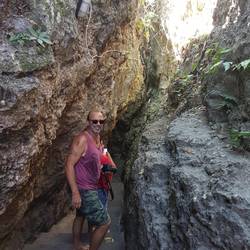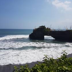 Den Westen der Insel 🏝wollten wir uns heute ansehen...und dafür hatten wir zwei Optionen. Entweder mit dem Motorroller 🛵für 75.000 IDR Miete für einen Tag oder mit dem Auto🚘🚗 mit einem Guide für 600.000 IDR. Für den Roller 🛵 sprach eindeutig der Preis, gegen ihn die von verschiedenen Blogern und Einheimischen beschriebenen "Straßen"verhältnisse und dass unsere SIM Karte hier nicht funktioniert, um mit Maps die Wege zu finden. Während ich gerade im Begriff war, mich klar für die Autotour zu entscheiden, kam Marc mit einer Überraschung...er hatte denn schon mal einen Roller🛵 gemietet. Hhhmmmm....na mal sehen, wie das wird ....auch wenn ich mit einer gewissen Grundskepsis an unser Nusa Penida Roller-Abenteuer ran ging, war ich doch froh, dass Marc ein sicherer und geübter Fahrer ist und ich hatte volles Vertrauen in ihn. Wir fuhren zunächst eine gut ausgebaute Straße entlang in Richtung Hafen. Weit kamen wir nicht, da wir eine Turtle Conservation Station🐢 sahen, die wir uns natürlich ansehen mussten. Unser erstes Ziel der Natursightseeing auf Nusa Penida sollten Angels Billabong und Broken Beach sein, wurden sie aber nicht...stattdessen landeten wir im Tembeling Forest ...auf einem sehr sehr holprigen schmalen Schotterweg. Da wir schon mal hier waren gingen wir am extrem dichten Wald, der in eine Schlucht hineinwuchs, den Berg und die 300 Treppenstufen hinunter zum Naturpool und zum felsigen Strand....und danach auch wieder hoch...auch wenn der Wald Schatten spendete, waren wir nach den ganzen recht hohen Treppenstufen und ca. 400 Höhenmeter klatschnass....keuch...schwitz😓...und nun noch die staubige Schotterpiste mit dem Roller wieder hoch...🙄😯