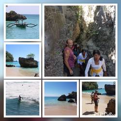 Auf der Suche nach unserem eigentlich ersten Ziel, brauchten wir zwischendurch noch in einem kleinen Dorf eine Lunchpause, um dann gestärkt wieder den falschen Weg zu nehmen...🙄🙄🙄...das fraß Benzin und so versuchten wir an einer Mini-Tankstelle zu tanken....einen ganzen Liter gab es dort noch für uns...Benzin war ausverkauft...Also auf zur nächsten Möglichkeit an einem kleinen Dorfshop. Dort gab es auch jemanden der etwas Englisch konnte, den wir nach dem Weg fragten. Der junge Mann bot uns an, uns vorauszufahren und den Weg zu zeigen....zuerst zum Karang Dawa View Point und danach zum Angel Billabong und zum Broken Beach für 100.000 IDR. Da wir heute noch etwas zu sehen bekommen wollten, nahmen wir das Angebot an. Ca. 25 Minuten über Schotterwege gespickt mit Schlaglöchern hoch und runter....😯...wenn Bloger, die mindestens 25 Jahre jünger und leichter waren und zum Teil allein auf dem Roller fuhren, die Wege als schwierig empfanden...fand ich unsere Fahrt gar nicht mehr lustig. Mir tat nur noch alles weh. Den Schmerz vergaß ich aber sehr schnell am grandiosen Aussichtspunkt....😍😀...einfach nur Wow.