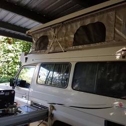 Die erste Nacht in unserem Camper, auf einem ausziehbaren Brett mit einer ca. 5 cm dicken Matratze mit einer Breite von 1,20 m unter dem hochstellbaren Dach, war noch etwas gewöhnungsbedürftig, speziell für unsere Rücken🙄🤔😊....da müssen wir uns noch etwas einfallen lassen, wie wir unsere Schlaf- Unterlage etwas weicher machen können.