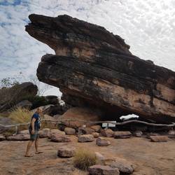 Vier in einem....Kultur, Kunst, Natur und Bewegung....😊hatten wir heute auf unserer Tour nach Ubirr, im Nordosten des Kakadu-Nationalparkes...an der Grenze zu Queensland und ca. 70 km weiter südlich in Nourlangie. Nach Kilometern vorbei an Grasland, Eukalyptus- und Drachenbäumen, kündigten sich die großen übereinander geschichteten Sandsteinformationen schon mal durch in der Landschaft herumliegende Riesensteine und kleinere Sandsteingebilde an. Endlich angekommen in Ubirr, kletterten und wanderten wir in Sandsteinformationen herum und waren schwer beeindruckt von der Aborigini Kunst an den Felswänden, die schon tausende von Jahren alt ist....und dabei noch so gut erhalten.....und selbst wir als Laien konnten viel auch ohne Erklärungen erkennen und den Rest mit den sehr guten Erklärungen identifizieren....Wahnsinn.😮....und oben auf den Felsen dann ein gigantischer Blick über das Land.