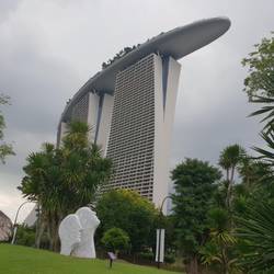 Wir schlenderten durch die Parkanlagen in Richtung Marina Sands Bay, ein Hotel in drei Wolkenkratzern, die auf dem Dach mit einem schiffsähnlichem Gebilde verbunden sind. Darauf gibt es in 200 Meter Höhe einen Infinity Pool, eine Rooftopbar und ein Conservation Deck. Auch das heben wir uns für abends auf. Aber reingucken in dieses Super-Nobel- Hotel kann man ja schon mal. So gönnten wir uns dort zu normalen Preisen einen Kaffee und ein Stück Kuchen.☕🎂🍩
