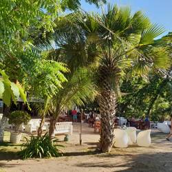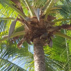 ....und mit einem Mal raschelte es sehr laut in den Bäumen, krachte es und ein ca 1,20 m langer wuchtiger hellbrauner Leguan mit aufgestellten Dornen mit einem langen rot-beige gestreiften Schwanz fiel wie reifes Obst aus den Bäumen, schaute etwas komisch drein, schüttelte sich und mühte sich wieder ab, den Palmenstamm hoch zu kommen.🦎🌴 Scheinbar ein gemeiner Schwarzleguan. Gut, dass ich gerade das Smartphone zur Hand hatte....📱📷📸,so konnte ich direkt Bilder aus der Nähe machen...😊🦎