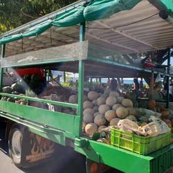 Weiter ging unsere Fahrt wieder mal an grossen Ananasplantagen vorbei, auf denen gerade geerntet wurde.🍍🍍🍍....und dann war mit ruhiger Fahrt Schluss😏🙄..., auf Schotterpiste mit ordentlichen Schlaglöchern fuhren bzw. schaukelteten wir an endlosen Bananenfeldern🍌🍌🍌 von Chiquita und Del Monte vorbei.