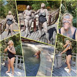 Einmal den Körper einreiben mit heissem Schlamm aus den umliegenden brodelnden Schlammlöchern,....und immer schön mit der flachen Hand nur von der Oberfläche wegnehmen,....sonst wird es schmerzhaft....😖 So eingegatscht 👤 ging es zum Trocknen in die Sonne☀️.