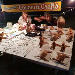 So fuhren wir heute zum Souvenirshopping in den Südosten der Insel. 🚗Auf dem Weg lag eine Bude, in der ein Künstler Holzarbeiten und aus den Früchten des Kalebassenbaums schön gefertigte Sachen anbot.