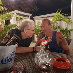 ....und zur Zeit macht u.a. Rob hier Urlaub, der Bartender mit dem Marc zusammen gearbeitet und die meiste Freizeit in Stockholm verbracht hat.😀😊 War das ein nächstes Hallo und eine Freude...😊😀....die Überraschung war gelungen.🎁😊😀🤩 Die beiden hatten viel zu erzählen....😊😉 Rob ist Australier und vor über 25 Jahren beim Reisen in Schweden hängen geblieben.😊😀