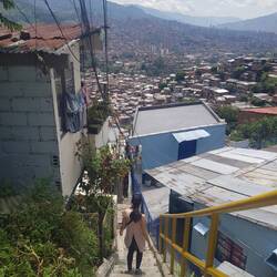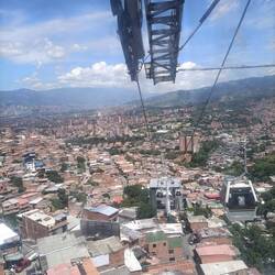 Depuis 2 jours, nous découvrons Medellin, tout à fait fascinante. La ville de couleur brique semble grignoter les montagnes environnantes, spectacle que nous avons pu admirer en empruntant quelques-uns des téléphériques qui permettent de relier les quartiers des pentes (les plus pauvres) au centre ville. Une visite guidée par une habitante de la comuna 13 nous permet de retracer l'histoire de ce quartier, qui fut l'un des plus dangereux du monde. Aujourd'hui, les touristes peuvent accéder à certaines zones que les habitant.e.s ont réinvesti : street art, hip hop et arepas locales donnent désormais un aspect festif à cette partie de la ville. Le soir, nous profitons de l'animation du Poblado, où Mahé peut donner libre cours à son célèbre déhanché. Le lendemain, petit tour au parc Arvi, que nous rejoignons également en téléphérique (+1000m par rapport à la ville !) : en lieu et place de la neige, on survole la canopée.