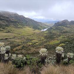 Après quelques heures de bus nous arrivons à Mongui, petit village de montagne très mignon, dans lequel on ne rigole pas avec la Vierge Marie dont c'est la fête ce weekend. D'ailleurs nous croisons sur la toute fin du trajet une étrange procession motorisée. Un mélange trucks et Vierge Marie assez inattendu. Puis une nouvelle procession avec fanfare et bougie dans le village une fois arrivés. Après un dernier coup de fanfare et de feu d'artifice pour fêter l'ascension à 5h du mat', le pueblo se réveille doucement et nous partons pour le Paramo, écosystème spécifique des Andes dans lequel on trouve les fameux Frailejònes, plantes à l'allure extraterrestre et zionesque. La première montée se révélant être une piste interminable, nous faisons un petit coup de stop a l'approche d'une voiture. Surprise, une guide accompagnant ses clients se tient sur la banquette arrière. Durant le court trajet, elle répond obligeamment à nos questions sur les Muiscas, les traditions indigènes et l'histoire évangélique de Monguí. Puis nous informe qu'il nous est interdit de pénétrer le paramo sans payer un guide. Mais comme on est des oufs, on y va quand même. Et heureusement ! Le paysage de tourbières est incroyable. Il rappelle un peu l'Écosse, entre brumes et lacs sombres, avec l'exotisme et l'altitude en plus (on atteint les 3800m non sans un petit mal des montagnes 😵‍💫). Résultat : une très belle journée, sans guides et sans droit de passage à payer : Mahé est content !Read more