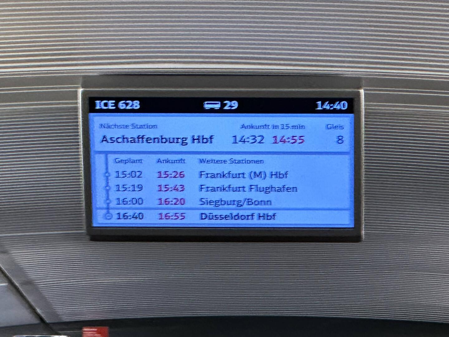 Knappe 20 Minuten von den 35 Minuten Verspätung (in Nürnberg) will der ICE noch aufholen