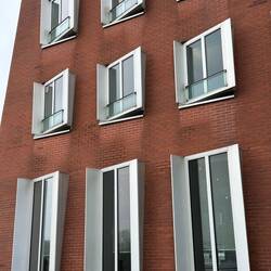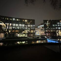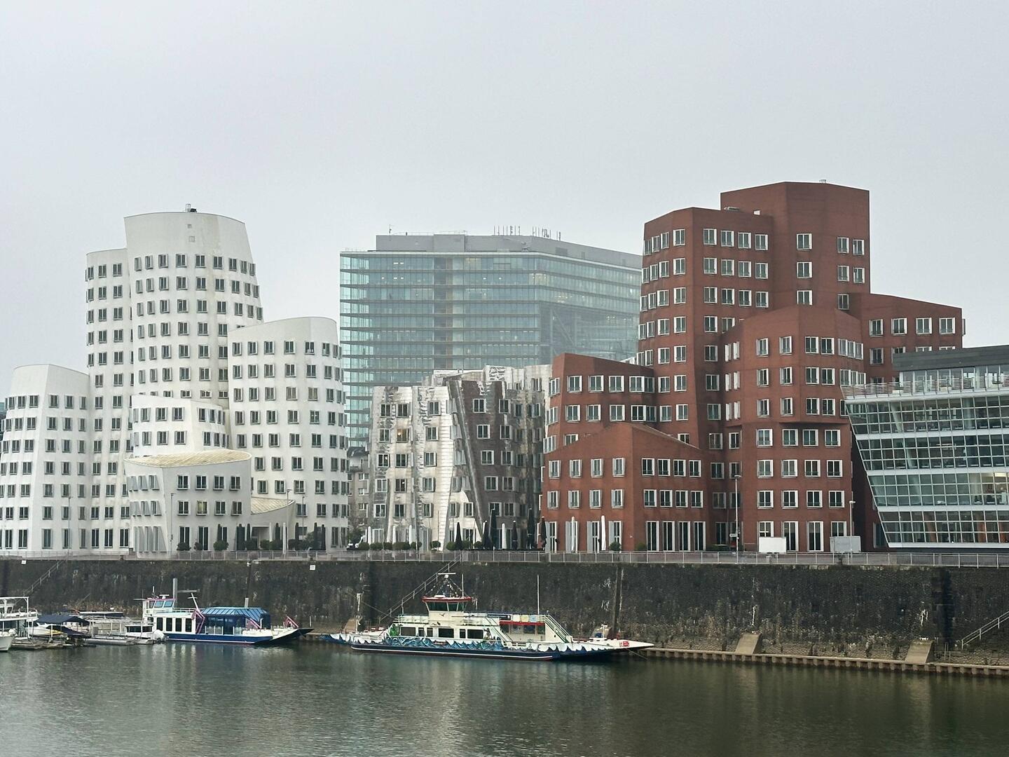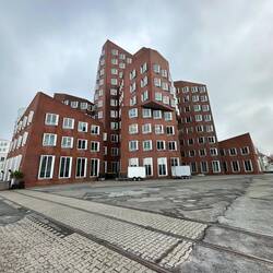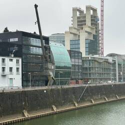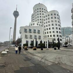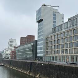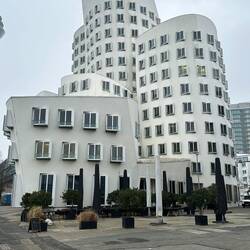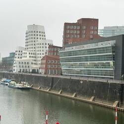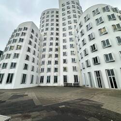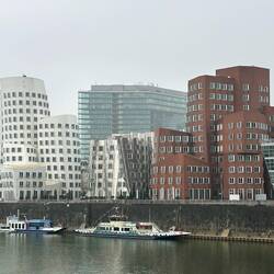 Diese anscheinend oft auch Zollhof genannte 3er-Gruppe von Häusern im Medienhafen wurden 1996-1998 vom Architekten Gehry gebaut.
