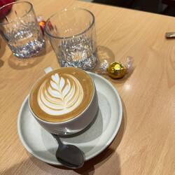 Habe mich mit einem Latte Macchiato und einem Pistazienmuffin arrangiert.