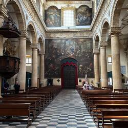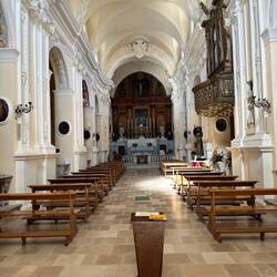 Das Innere des lateinischen Kreuzes bestand ursprünglich aus einem Kirchenschiff und vier Gängen, von denen zwei im 18. Jahrhundert in Seitenkapellen umgewandelt wurden. Die Kirche hat siebzehnRead more