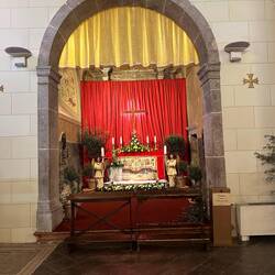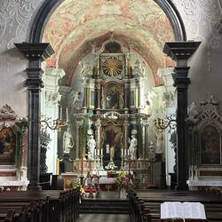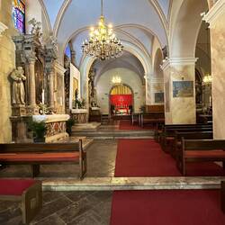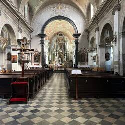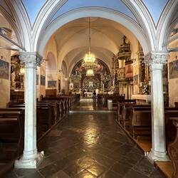 Die Kirche Mariä Himmelfahrt war leider zu … aber zumindest konnte man durch eine Glasscheibe im Eingangsbereich Bereich reinschauen .. da kommen die drei Fotos her. Die Info von hier Czytaj więcej