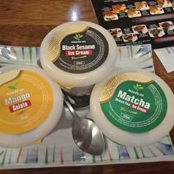 We've ducked accross the road from our hotel to have a Japanese feast. Starting with the sushi train, we've had fried chicken sushi, teriyaki chicken rice balls, raw salmon, poached prawns, andLeia mais