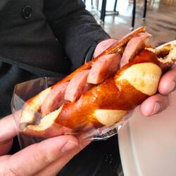 Once we were in the park, we split up to tackle different things. Michael went back for round two of the Chocolate place, grabbing both a hot and a cold one to relax whilst he did his journalling. He said it was perfect drinking temperature and easily the best drinking chocolate he has ever had, and that coming here for that was worth it alone. He also got some baked goods before entering the park, especially loving this curry sausage pastry.