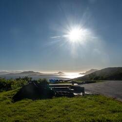 So schnell kann es gehen. Vom gestrigen Schauer und dem Starkwind heute in der Früh keine Spur. Der Fjord liegt friedlich und spiegelglatt vor unserem Fenster, die Wolkendecke beginnt aufzureißenЧитать далее