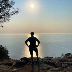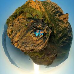 ПутешественникLydias Knie gehts wohl wieder besser (Bienengiftsalbe)? Das Gelände ist teilweise doch recht bizarr - und dann das Farbenspiel mit der untergehenden Sonne😍