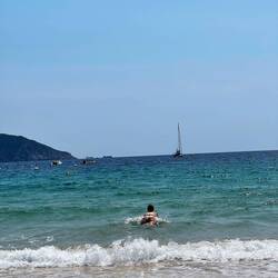 Die verdiente Abkühlung nach der Wandertour wartete am Plage d'Arone auf uns.