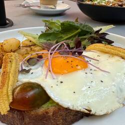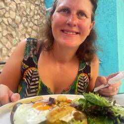 Frühstück in Cucu - gesund - lecker 😋 - entspannt - drinnen wars uns tatsächlich zu kalt 🥶 aber keine Sorge der Wetterbericht sagt uns mal wieder 40Grad voraus und es fühlt sich noch heißer an...