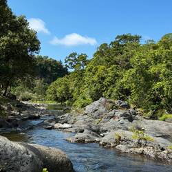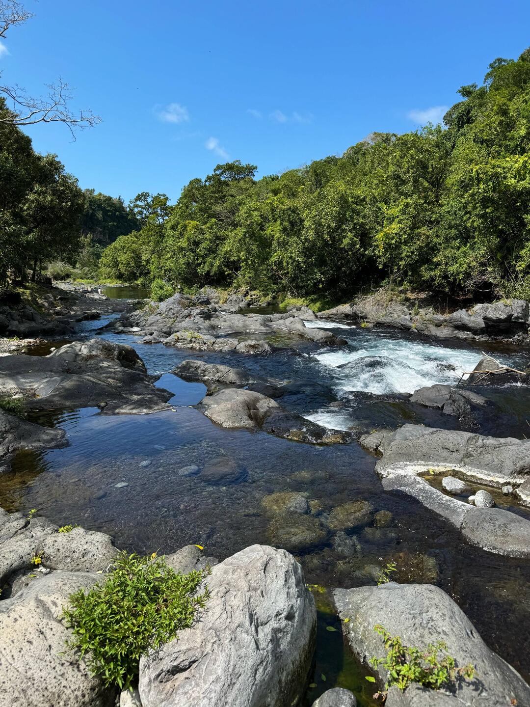 Kurze Snackpause - herrlich entspannend - manche Locals nutzen die Flusstelle auch zum Baden.