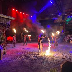 Moorea, jet ski le matin (photos sur la GoPro deso les abo), du kiff sur les plages l’aprem et visites d’un village tipique le soir avec spectacle on 🔥🔥. (Tiki village)