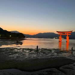Nachdem wir bereit waren sind wir noch mal zum Itsukushima Tori Gate gegangen. Das war durch Ebbe und Flut jetzt komplett frei von Wasser und man konnte hinlaufen. Für Fotos fande ich es gestern schöner, aber insgesamt war es trotzdem richtig cool.
