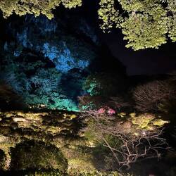Dann mussten wir Nagasaki auch schon verlassen, den wir hatten 30 Minuten weiter Tickets für den letzten Tag der Teamlabs Ausstellung in Mifuneyama. Es war dort soooo traumhaft und magisch. Der ganze Wald und Berg Bereich wurde beleuchtet und es hab auch ein verlassenes Onsen-Gebäude, dass mit Ausstellungen gefüllt worden ist. Überall lief auch passende Musik. Ich bin so froh, dass wir den letzten Tag davon noch mitnehmen konnten, und das wir dadurch die überfüllte Ausstellung in Tokyo erstmal überspringen können. Es war auch nicht viel los und man konnte überall in Ruhe fotografieren.