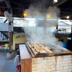 Zum Glück konnten wir dann doch noch in einen der größeren Busse. Dann ging es auch direkt los mit 2 Stunden Stau… unser erstes Ziel erreichten wir verspätet: der Kamishikimi Kumanoimasu Schrein war ein kleiner Schrein mitten im Wald, den man über eine Vielzahl von Treppen erreichen konnte. Die Stimmung war so magisch und ruhig dort, obwohl wir mit einer Reisegruppe da waren. Am “Gipfel” des Schreins befand sich ein Felsen, in dem ein tunnelartiges Loch zu sehen war. Geschichten besagen, das dort ein Demon rausgekommen ist. Leider konnten wir nur 30 Minuten bleiben und es ging mit dem Bus weiter.