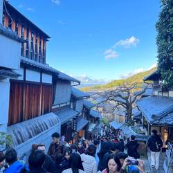 Als der Regen besser wurde, sind wir dann weiter. Am Anfang ging es von den Menschen und wir konnten vor dem 📍Hōkan-ji Tempel noch Bilder ohne viele Personen im Hintergrund machen. Aber auf einmal kamen zahlreiche Reisegruppen etc und der Weg hoch wurde so anstrengend. Ich wollte unbedingt wieder in ein Café das wir vor Jahren bei Regen gefunden hatten: 📍 Otowa Saryo, von da aus hatte man so eine tolle Sicht über Kyoto. Als wir dort ankamen mussten wir eine Nummer ziehen und nach einer Stunde wieder kommen. Diese Stunde nutzen wir für Fotos vor dem Kiyomizu-dera Tempel. In den Seitenbereichen gab es nämlich einige Bereiche ohne viele Chaos.