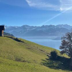 Der Seepromenade entlang geht es nach Hünibach. Von dort folgen wir dem Panoramaweg 26 Richtung Sigriswil. Der Weg ist sehr gut unterhalten und führt uns bis zu Underi Allmend mit ein paar kurzen,Okumaya devam et
