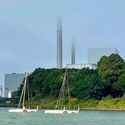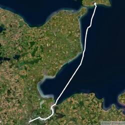 Bei trüben Wetter ging es mit Regen den kleinen Belt hinauf. Trotz dem schlechten Wetter genoss ich den Segeltag. Ich beschloss, bei Middelfart abzubiegen und den Gambord Fjord hochzusegeln. Der Wind nahm bis 18 Knoten zu und der enge Fjord machte das zu einem spannenden Abenteuer. Für die Nacht kehrte ich um und ankerte an einer Boje des DT,. Trotz schlechtem Wetter liessen sich die Segler von Middelfart nicht abschrecken und segelten bis weit in die Dunkelheit ihre Mittwochsregatta.