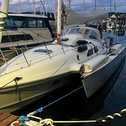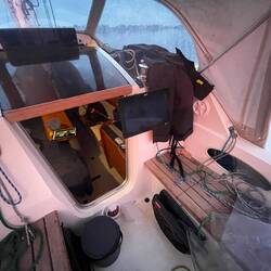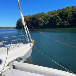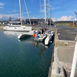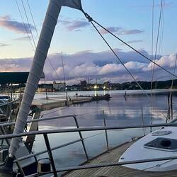 Ich nutzte diesen Tag für Wäschewaschen, Einkaufen und Ausruhen. Zu meiner Überraschung hatten Sabine und Sebastian aus Hamburg mit ihrer Trisolde vor mir festgemacht. Ich schaute mir da das eine oder andere Detail an ihrem Boot ab.