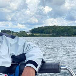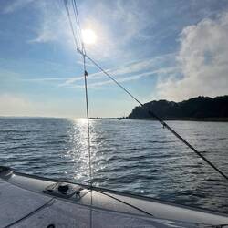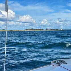 Nach dem Ärger beschliesse ich, das Gross ins 3. Reff aufzuziehen und unter Motor aufzukreuzen. Unter Ausnutzung der Wassertiefe bis 2m kreuzen wir mit 5-7 Knoten das Fahrwasser hoch.