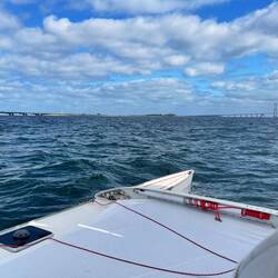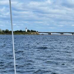 Für den Tag war WNW angesagt, und so kam es auch. Nach dem Ablegen aus dem Hafen ging es raum flott der grossen Beltbrücke entlang. Da ich der westlichen Brückenhöhe nicht traute (16.8m), segelte ich bis zum grossen Bogen nach Sprogø und kreuzte dann gegen Wind (5 Bft) und Welle gen Norden. Ein alter Dreimaster kreuzte auch auf und machte mehr Höhe als ich, ein frustrierendes Erlebnis!