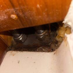 Auf der Höhe Bredholm erwischt uns eine aktive Kaltfront im dümmsten Moment: Ruder und Motor sind voll von Seegras und wir treiben südlich der Insel Richtung flach. Beim Versuch, Schraube und Ruder vom Gezeugs zu befreien, passiert, was passieren muss. Das aufgeholte Ruderblatt wird von der laufenden Schraube massakriert. Selber Schuld! Ich habe ja gewusst, dass das so läuft.
