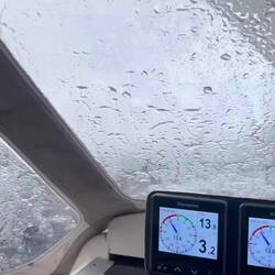 Gleich nach der Hafenausfahrt stellen wir fest, dass ein Aufkreuzen unter Segeln gegen die kurze, steile Welle nicht möglich ist. Also Genua ein und mit Motorunterstützung aufkreuzen. Das geht zwar, ist aber bei diesen Wellen ein rechtes Karjole.